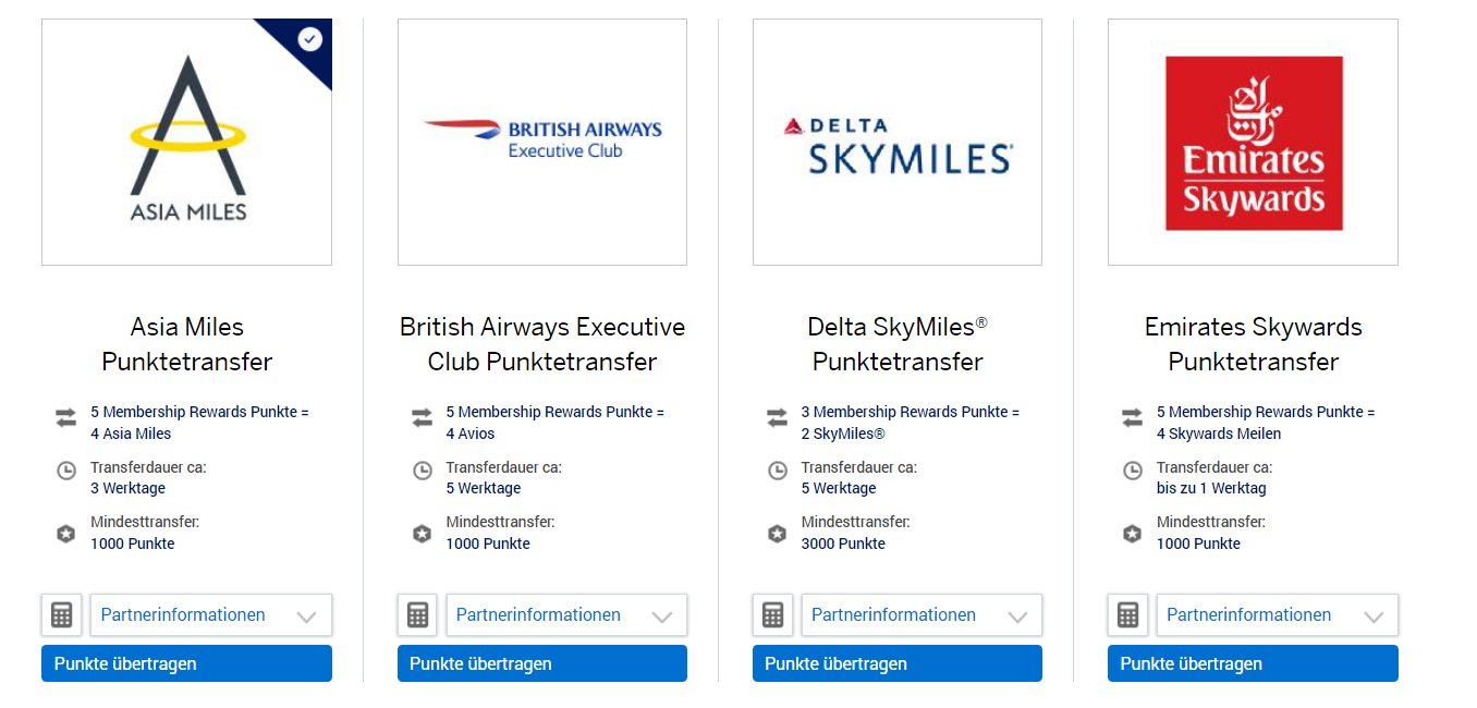 接下來是針對德國MR點數兌換航空哩程的規定與兌換比例。德國的MR點數兌換航空哩程一般來說要打8折,也就是說1點相當於0.8哩。