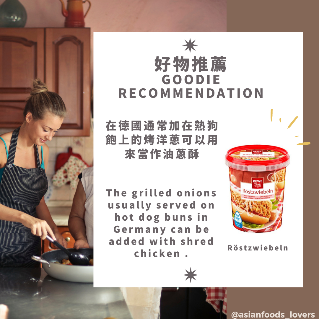如果人在德國,我也有辦法,請繼續看下去👉請到超市買放在熱狗堡上的烤洋蔥代替。