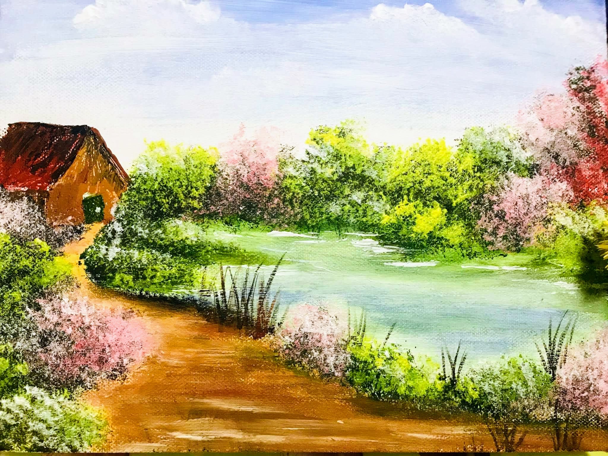 當時的想法很簡單,想要找尋自己的興趣,所以利用下班時間到一間畫室學畫畫。我的畫畫老師拆解了Bob Ross的畫風後,再將技法一一的教授給我們。原本總是認為畫油畫是一件非常困難的事情,畢竟這是對於傳統油畫的認知就是如此。然而Bob Ross的畫風的厲害之處在於簡化了油畫的過程,但還是能完美的呈現油畫層層疊加的效果。